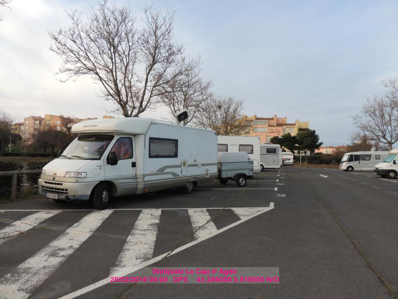 Stellplatz Le Cap d’ AgdeEntsorgung nur über Automaten, kein Wasser und Strom. Parkplatz für Womos.Wachdienst kommt am Abend Kassieren. € 5,00