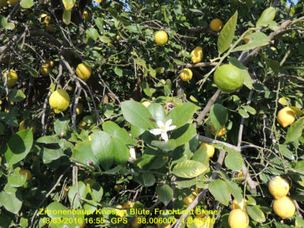 Heute haben wir ein sehr schönes warmes Wetter. Wir bleiben heute am Stellplatz und fahren erst morgen in der früh weiter. Mit Shila machte ich einen Spaziergang zwischen den Zitronen und Orangenbäumen. Wer glaubt das sei so einfach zwischen den Bäumen die Orientierung zu behalten hat sich getäuscht. Es gibt sehr viele Wege die plötzlich enden oder es ist ein Bewässerungskanal wo es nicht mehr weiter geht. Am Ende kommt man irgendwo wieder auf eine Straße, aber jetzt muss man die richtige Richtung finden damit die kilometerlangen Umwege nicht zu lang werden. Zum Essen sollte ich in 2 Stunden wieder da sein, leider wurden es aber 3,45 Stunden bis ich wieder am Stellplatz war. Diese verschiedenen Vegetationen Knospe Blüte und Frucht auf Bild festzuhalten ohne richtiges Objektiv ist halt schwierig. Bei einen Dorf Durchgang waren nur Erntehelfer in dunkler Gesichtsfarbe, die Umgebung war nicht recht freundlich. Da steigt der Adrenalin Spiegel und ich war froh dass Shila manchmal eine grimmige Schnauze machte.