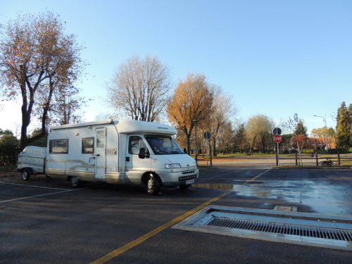 Heute den 14.12. starten wir unsere Reise nach Spanien, ca. 10.00 Uhr bei starken Nebel. Wir fuhren zur Tierklinik Wels da wir für Shila noch Medikamente wegen dem Herzwurm der in den südlichen Ländern eine Gefahr für Hunde ist. Nach Abholung der Medikamente ging es weiter im Nebel bis kurz vor Seewalchen, ab Seewalchen  lichtet sich der Nebel es folgte herrlicher Sonnenschein, für diese Jahreszeit war die Sonne sehr kräftig und tat der Seele gut. In Salzburger Raum war nicht nur die Sonne sondern auch die schneebedeckten Berggipfel ein Augenschmaus. Ab Spittal an der Drau holte uns der Nebel wieder ein und blieb uns treu bis zu unserem Stellplatz in Valvasone. Teilweise hatten wir nur eine Sicht von 50 Meter. Ca. 18 Uhr 30 kamen wir beim Stellplatz an. Es waren schon zwei  IT Womo am Platz. Nach dem Abendessen ging ich mit Shila noch im Ort spazieren, leider ist Lilly nicht mehr bei uns, Sie musste wegen einen Nasenkrebs eingeschläfert werden, wir wollten Ihr die Schmerzen und Leiden ersparen. Wir denken gerade bei unseren Reisen oft an Sie, auf die gemeinsamen schönen Stunden.