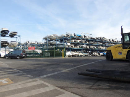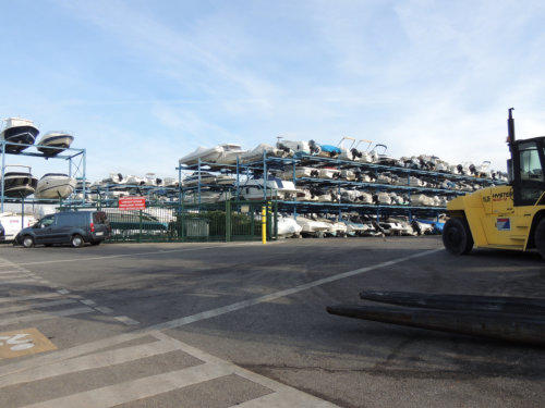 Nach diesem anstrengen Tag fuhren wie zum CP Les Cigalis in Mandelieu in la Napoule. Der CP selbst bietet keinen Komfort, die Plätze sind klein und von Bäumen umgeben.  Bei der Dusche muss man sich mit dem Rücken auf den Wasserknopf lehnen da es sonst kein Wasser gab. Heizung des Duschraumes hat auch nicht funktioniert. Restaurant  sind in unmittelbare Nähe. Die Umgebung ist sehr schön ,man kann neben den  Wasserkanäle links und rechts spazieren gehen, Bocciabahnen sind genug vorhanden und unmittelbar daneben ist ein wunderschöner Lehrpark mit Bäumen und Sträucher, alles auch in lateinisch beschriftet. Wasservögel Kunde in französisch. Motorboote gibt es hier in rauhen Mengen. Ich habe mit Shila einen Rundgang gemacht um einen kleinen Überblick über die Umgebung zu bekommen. Camping Einfahrt  Les Cigales. Für Motorbootbesitzer sicher ein guter CP eigene Anlegestellen und direkter  Zugang zum Wasser. Heute machen wir einen Ruhetag in Les Cigales, obwohl der CP nicht unseren Erwartungen entspricht. Die Umgebung von  La Napoule wollen wir ein wenig besuchen. Vormittag gingen wir den Kanal La Siagne entlang und besuchten die Motorbootwerft da ich mir gerne den Winterparkplatz für die Motorboote ansehen wollte. Riesige und kleinere Boote wurden hier auf hohe Regale gelagert, Hubstapler heben die Boote hoch in die  Regale. Transportieren die Boote zum Kanal und lassen die Boote in das Wasser.
