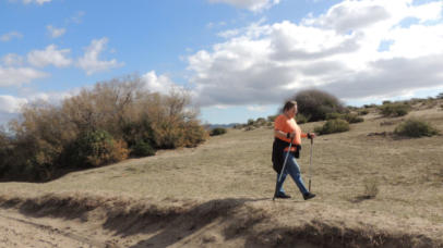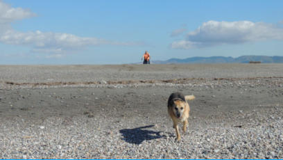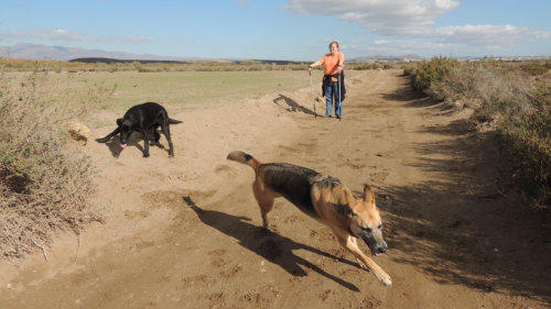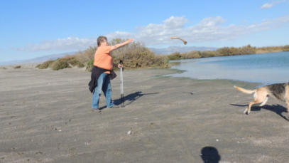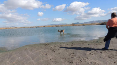 Der Tag war morgens schon sonnenklar, wobei ich aber nach dem Frühstück mit Gerti und Gassi gehen mit Shila wieder in das Bett hüpfte und bis 10 Uhr meine Schönheit pflegte. Inzwischen machte Gerti im Womo Klarschiff wobei ich mich heute vor den Geschirr spülen mit den Schachzug wieder ins Bett zugehen drückte. Gewonnen.Mittags gingen wir Richtung Naturpark und Meer ohne bestimmte Vorstellung, wir gingen einfach los und genossen das warme schöne Wetter. Shila lernte einen jungen lieben schwarzen Hund kennen und ein tolles Spielen folgte.