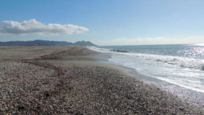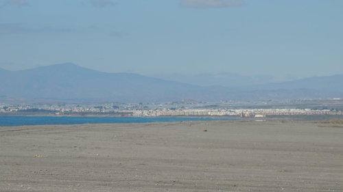 rechts im Bild ist die Ortschaft Retamar und El Toyo
