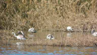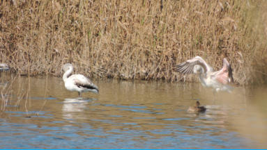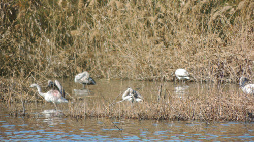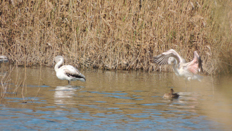 Wir gingen in den Naturpark wo eine versteckte Bucht ist mit nicht so salzhaltigem Wasser wie das Meer, da sahen wir junge Flamingos, diese sind noch fast grau.