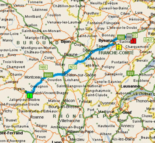 Clemont- Ferrand (Byanz) so gegen 15 Uhr. Den